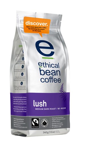 Ethical Bean Coffee Company Lush Medium Dark Roast comes in a 12 ounce bag. It is USDA organic certified. Any richer, and you’d ask it for it a loan. A heavy cup with Burgundian fullness, alive with fruit, smoke, and earth notes. Lush is currently made from an irresistible Sumatran coffee. From a whispering at the symphony mild to a grab you by the lapels bold, each of our exceptional coffees are made from the world’s best fair-trade certified organic beans. Artisan roasted in Vancouver, Canada, we test it and slurp it and stamp it with an e so that you’ll love it with the same passion that went in to creating it. Four concepts we don't take lightly at ethical bean. In fact, they serve as the pillars to absolutely everything we aim to do. And what we aim to do simply put is make the best fair trade certified organic, environmentally happy coffee on the planet. Sure, it's got to be downright delicious, but if the process itself isn't just, well then, we just don't do it. Read more...
