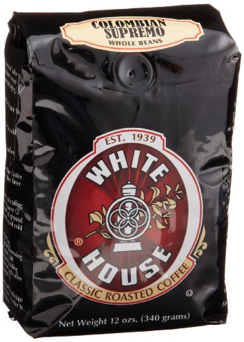 White House Roasted Coffee, Colombian Supremo, Whole Bean comes in a 12 ounce bag. It contains 100 percent Arabica coffee beans. White Coffee has been importing and roasting the finest quality coffee for over 65 years. We pioneered the development of specialty coffee over 25 years ago. A third generation family owned business, White Coffee assures you that you will always receive the kind of quality and service that you deserve. Read more...