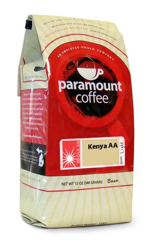 Paramount Kenya AA Bean comes in 12 ounce bags. One of the most popular single origins available. Known for its sharp acidity and winy aftertaste. Available in Regular Whole Bean and Ground, 5 lb Regular Whole Bean. Paramount Coffee has perfected its roasting process to unlock the unique characteristics of each bean, more than 100 varieties of premium coffee. Read more...